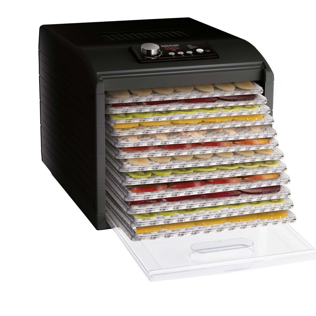 میوه خشک کن سنکور مدل SFD 6600BK یک دستگاه کاربردی و با کیفیت است. که میتواند انواع میوه، سبزی، گل، قارچ، گوشت و لواشک را به صورت خشک و ماندگار نگه دارد. دارای طراحی زیبا و مدرن است. که با هر سبک آشپزخانهای هماهنگ است. از جنس پلاستیک شفاف ساخته شده است. که امکان مشاهده روند خشک شدن مواد را فراهم میکند. دارای 12 عدد سینی است. که میتوانید بر روی آنها مواد مورد نظر خود را بچینید و خشک کنید. این میوه خشک کن همچنین دارای 5 برنامه اتوماتیک خشک کردن است. که برای مواد خاصی مانند سیب، قارچ، ماکارونی، گیاهان و جرکی طراحی شده است. این میوه خشک کن با دارا بودن توان 500 وات میتواند مواد را در بازه دمایی از 35 تا 70 درجه سانتیگراد خشک کند. این میوه خشک کن را میتوانید به راحتی تمیز کنید. و قطعات آن را در ماشین ظرفشویی بشویید.