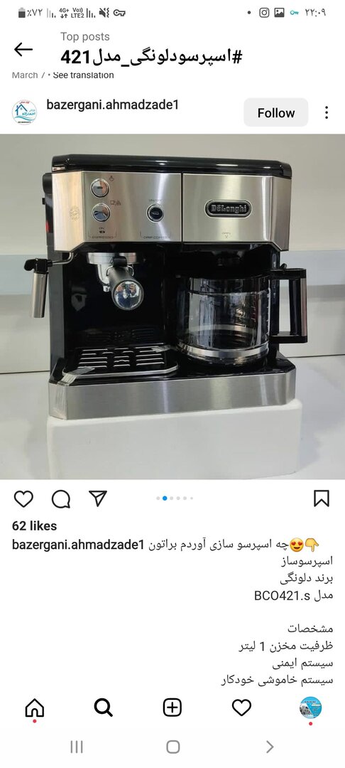 اسپرسوساز دلونگی مدل421