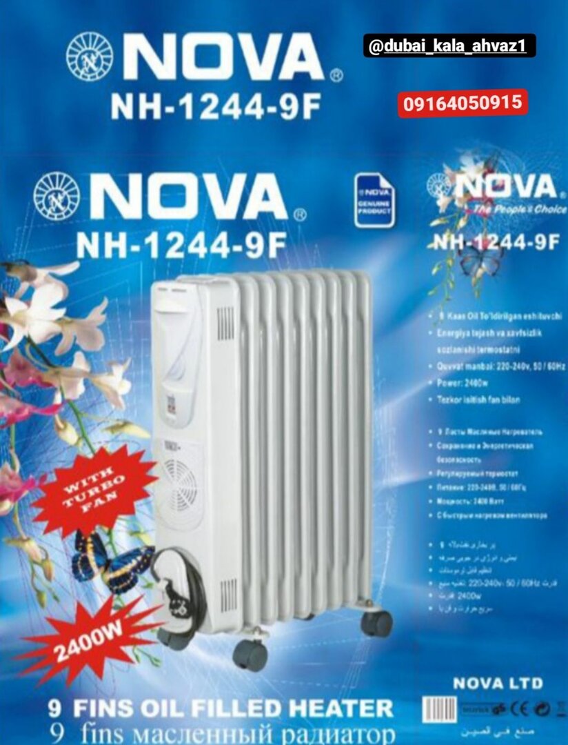 شوفاژ برقی نوا 9 پره مدل NOVA NH 1244 یک محصول متفاوت و با کیفیت است که به شما اجازه میدهد در فصل سرما گرمای مورد نیاز خود را به سرعت و به نحوی به دست بیاورید که به شما امکان راحتی و رضایت کامل را میدهد. با داشتن این شوفاژ برقی، شما دیگر نیازی به نگرانی درباره سرمازدگی نخواهید داشت.این شوفاژ برقی با استفاده از فناوری نوین و پیشرفته، توانایی تأمین گرمای متوازن را دارد. با 9 پره قدرتمند، این شوفاژ برقی قادر به توزیع همگن گرما در تمام اتاق خواهد بود، بدون اینکه بخشی از اتاق به سرما بیفتد. همچنین، با وجود دمای قابل تنظیم، شما میتوانید دما را به دقت به دست بیاورید و برای راحتی خود تنظیمات مناسب را انجام دهید.با استفاده از شوفاژ برقی نوا 9 پره، میتوانید به راحتی در هر فضایی از منزل خود استفاده کنید، از اتاق خواب و حتی اتاق مطالعه تا اتاق نشیمن و حتی حیاط خارجی. این شوفاژ برقی کوچک و قابل حمل است و میتوانید آن را به راحتی جابجا کنید و در مکان مورد نظر خود قرار دهید.